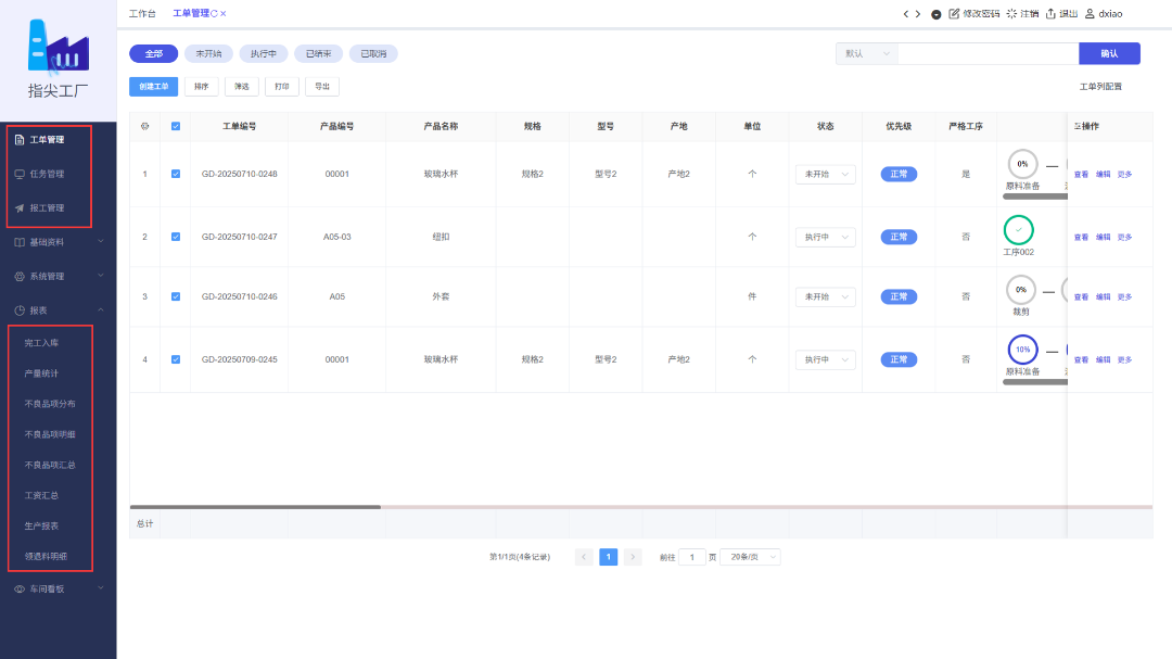 工單、任務、報工、所有報表均支持打印、導出功能。