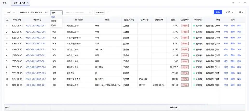 ? 將高級篩選中的業務狀態查詢條件放在報表頂部的日期過濾后顯示。涉及:銷售訂單列表、采購訂單列表、生產任務單列表、工序委外加工單列表。