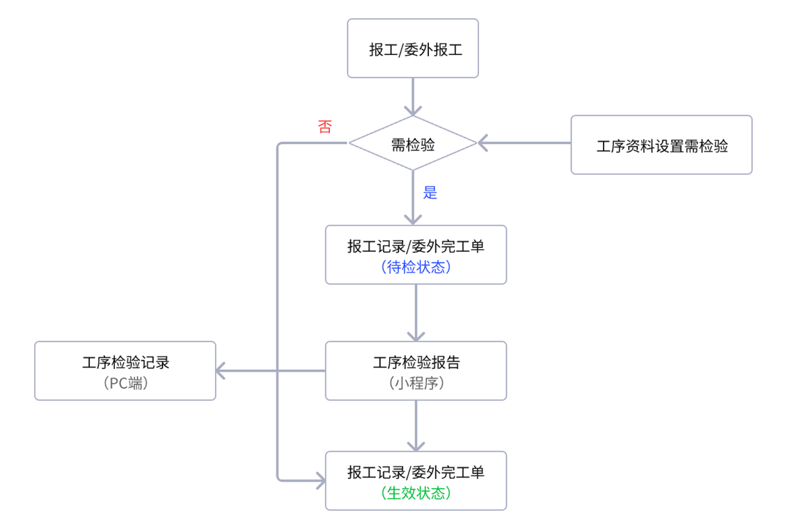 ? 需要質檢的工序需先在基礎資料—工序中啟用“需檢驗”功能 。
