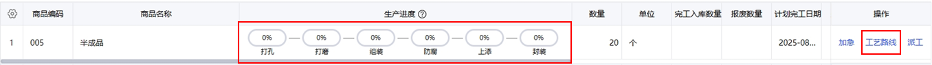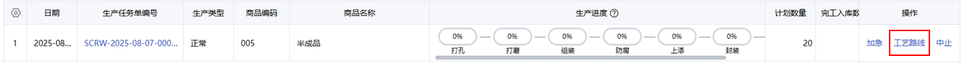 ?SMART+任務單詳情操作修改為:加急、工藝路線、更多(派工、完工、中止) ,點擊“工藝路線”進行修改;或雙擊生產進度單元格修改。