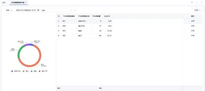 ? 新增工序檢驗記錄、工序返工單統計表/明細表、不合格統計表、不合格原因統計表。