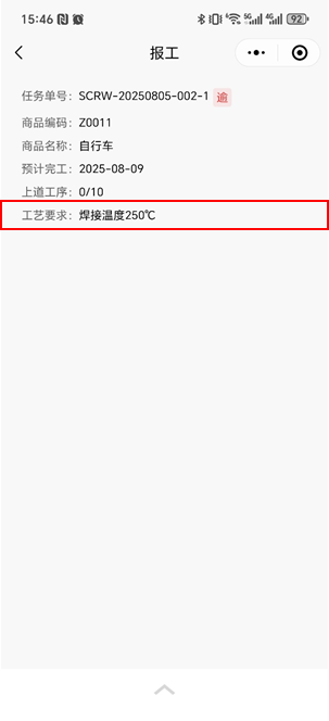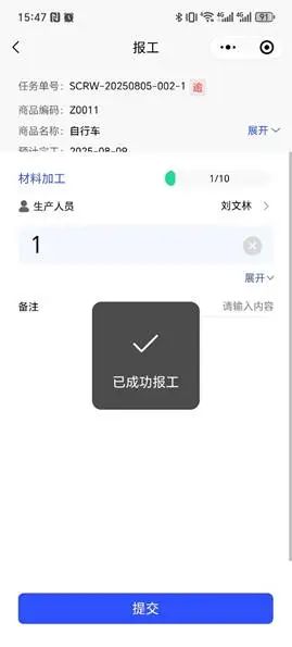 ② 報工自定義字段、備注、拍照,調整為直接在報工數量下方顯示。