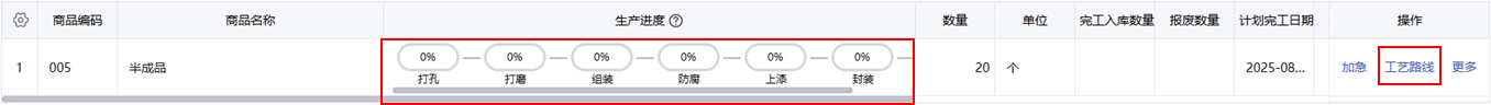 ?MES任務單詳情的操作中在“加急”后增加“工藝路線”,點擊“工藝路線”進行修改;或雙擊生產進度單元格修改