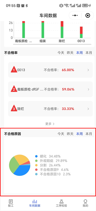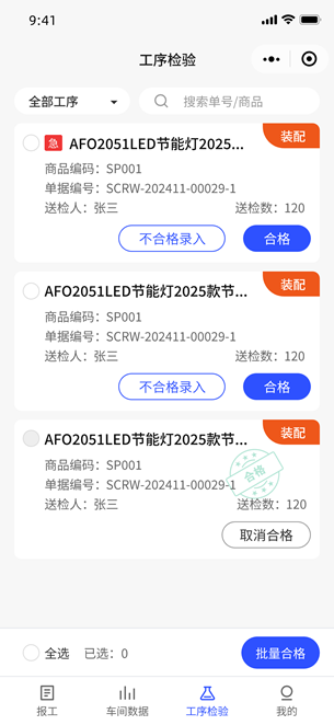① 需要檢驗的報工都顯示在小程序工序檢驗的待檢列表。