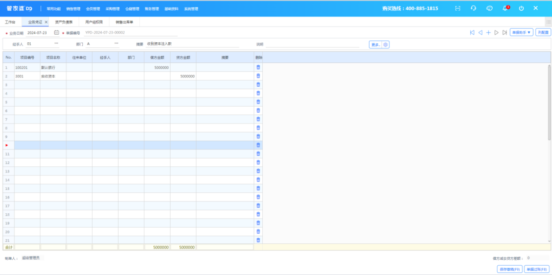 在日常業務中,企業經常會遇到資金或者賬務調整,比如收到投資款,或者股東資金注入,此時就需要用到憑證來進行財務數據的調整;另外一些特殊費用、收入等也需要通過憑證來做賬務處理,最終保證企業財務報表數據準確,所以管家婆D9新增業務憑證功能。更好的滿足小微企業賬務處理的需要。