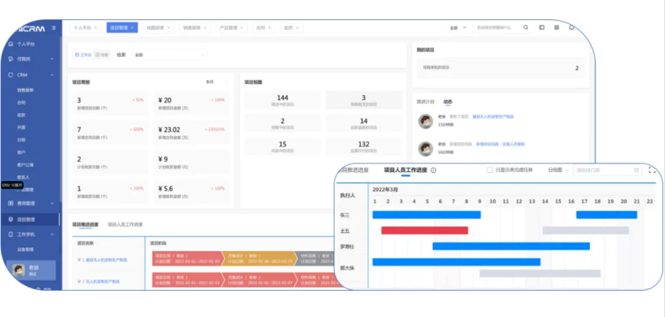 無論身處什么行業、開展什么樣的項目,都離不開對”人員、進度、成本、風險、檔案”的進度管理。管家婆CRM項目管理系統圍繞這些要素,以流程為樞紐,將組織人員、資源、項目等信息統一到系統,讓管理者隨時洞察項目全過程,做到降本控險。