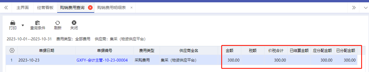 購銷費(fèi)用單—采購費(fèi)用分配單—購銷費(fèi)用查詢