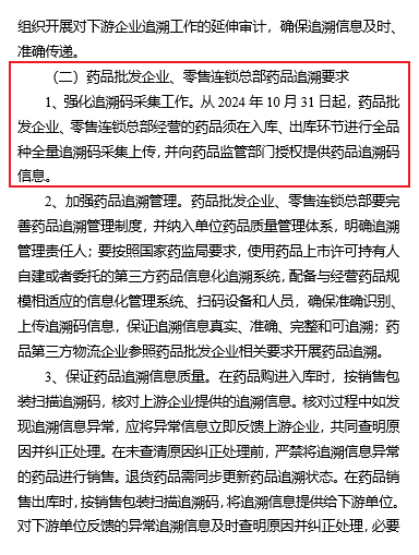其他區域的藥監部門也會陸續要求落實藥品追溯碼采集工作。