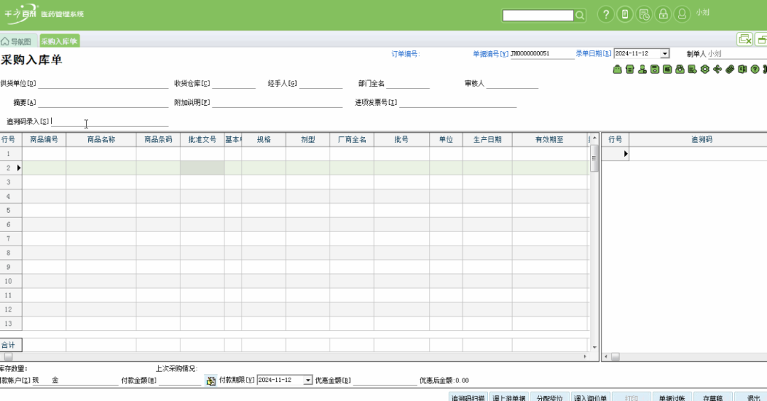 千方百劑醫藥管理系統在設計上力求簡潔高效。一鍵掃描追溯碼,自動關聯商品信息,簡化操作流程,減少人工錯誤。
