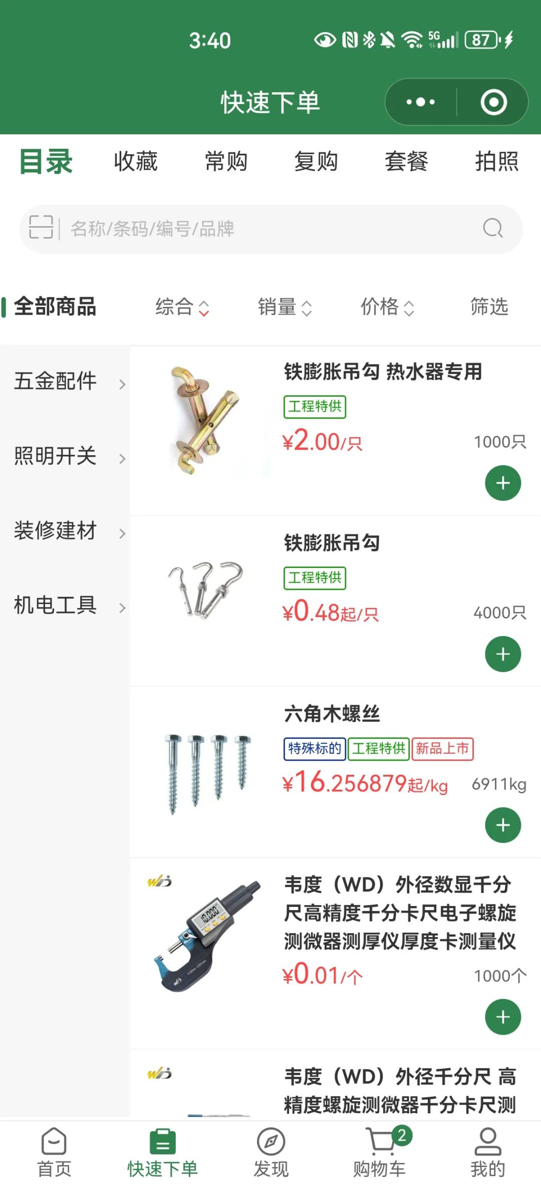 2000+客戶在線自助下單,日均訂單120+,擴品至3000+,從工具到勞保用品,生意邊界無限拓展