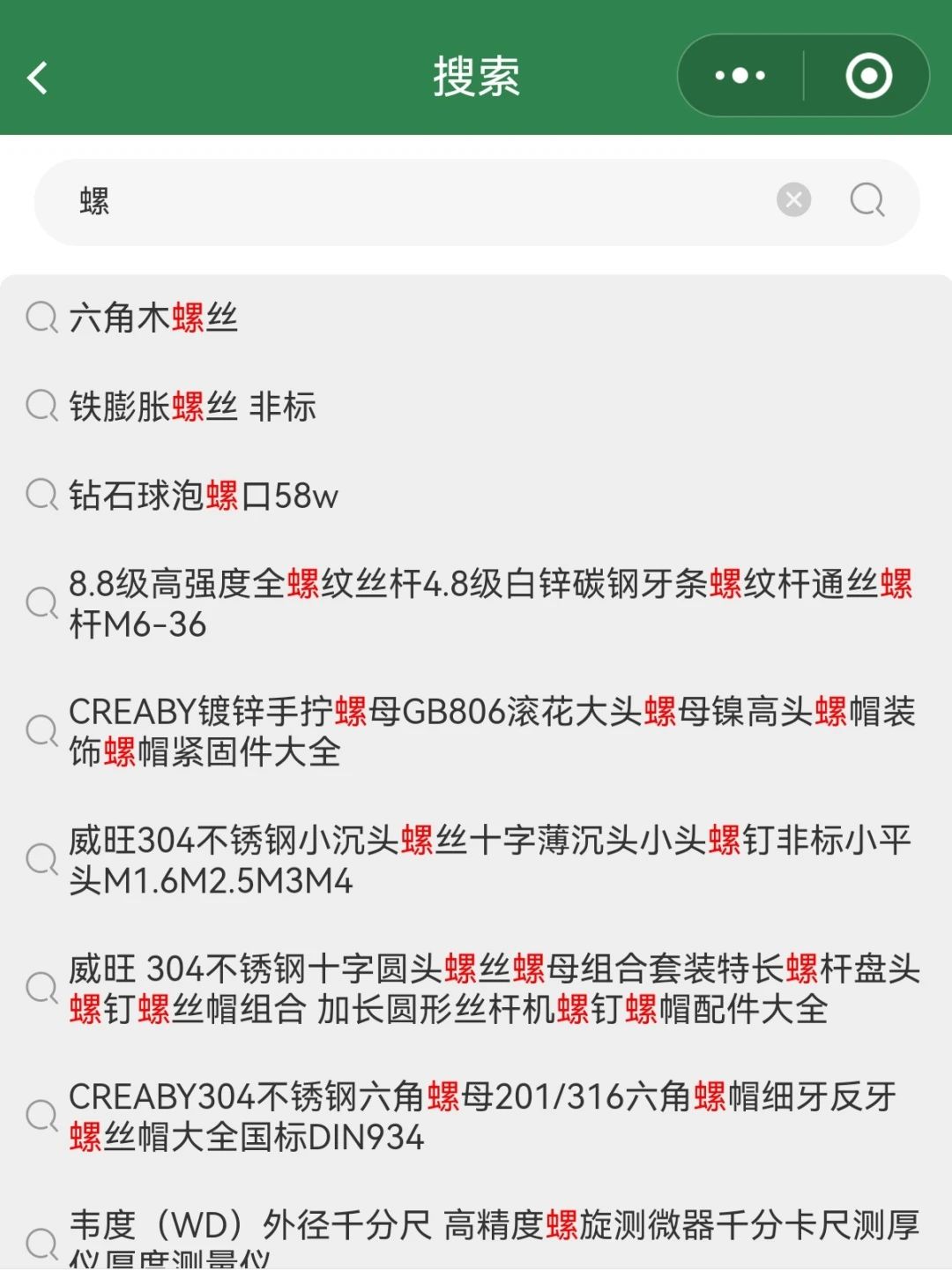 支持分詞聯想 / 模糊搜索 / 規格篩選,客戶找貨更快;后臺統計關鍵詞輔助需求預判