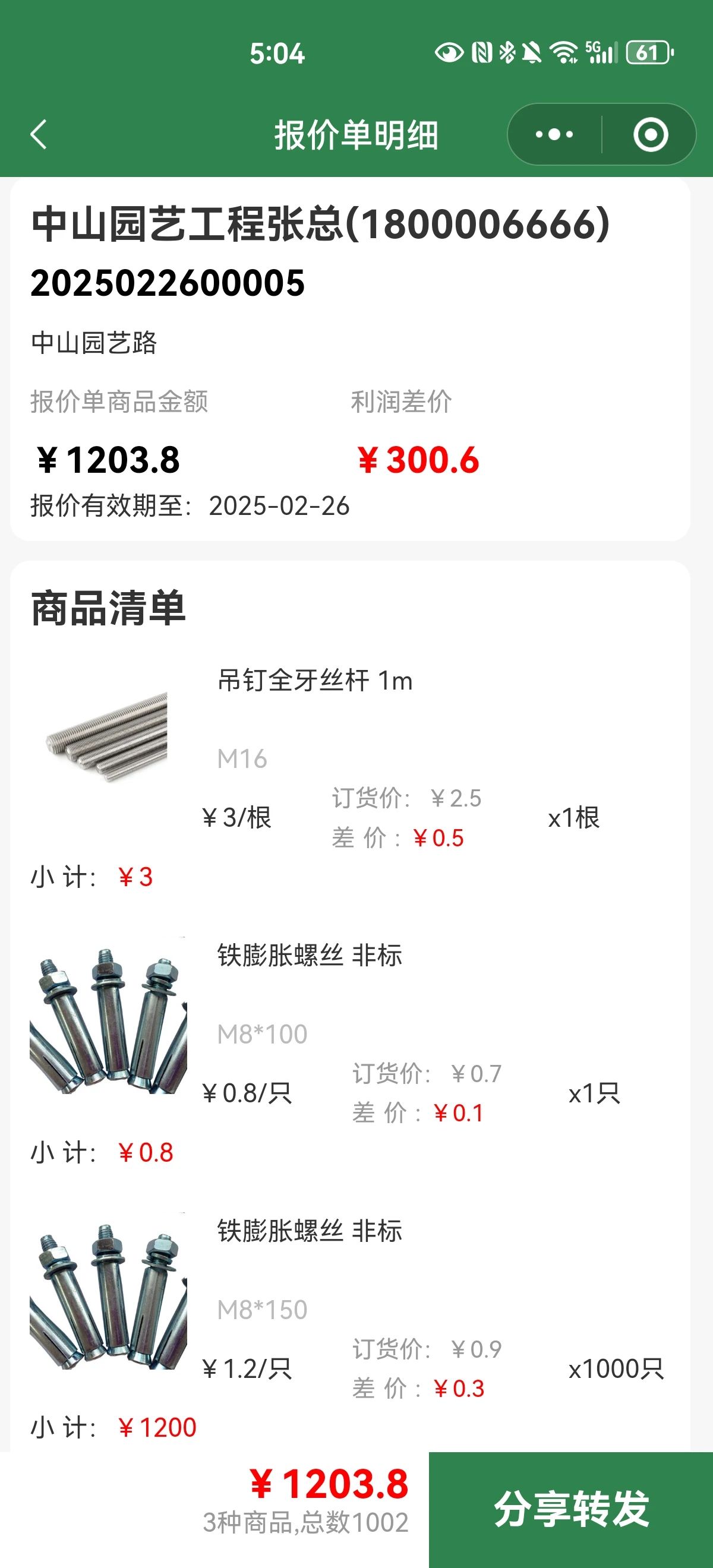 預訂單模式快捷生成圖文報價單,自動計算利潤,一鍵分享轉發,1分鐘不到即可完成報價