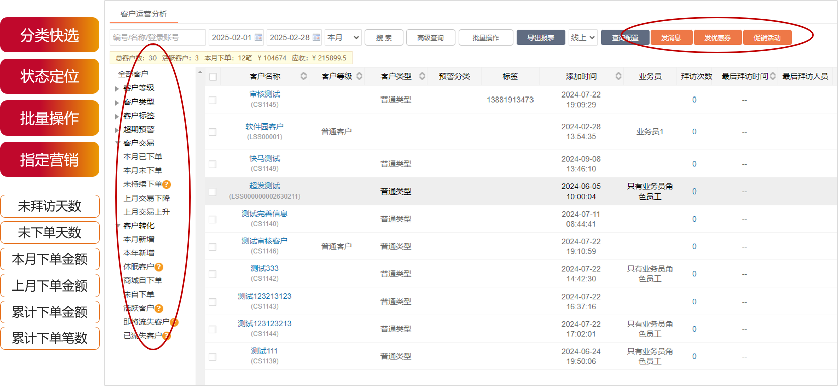· 客戶分層運營:通過 “高潛力新客、沉睡老客、區域 TOP 客戶” 標簽定向推送活動,某飲料經銷商向 “未下單超 30 天” 客戶推送喚醒券,激活 30% 休眠客戶,月銷售額增長 18%。