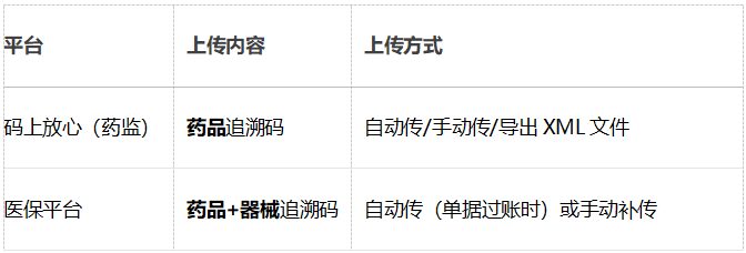 注意:僅“8”開頭的追溯碼(碼上放心體系)可上傳至該平臺(tái),其他碼需按醫(yī)保要求處理。