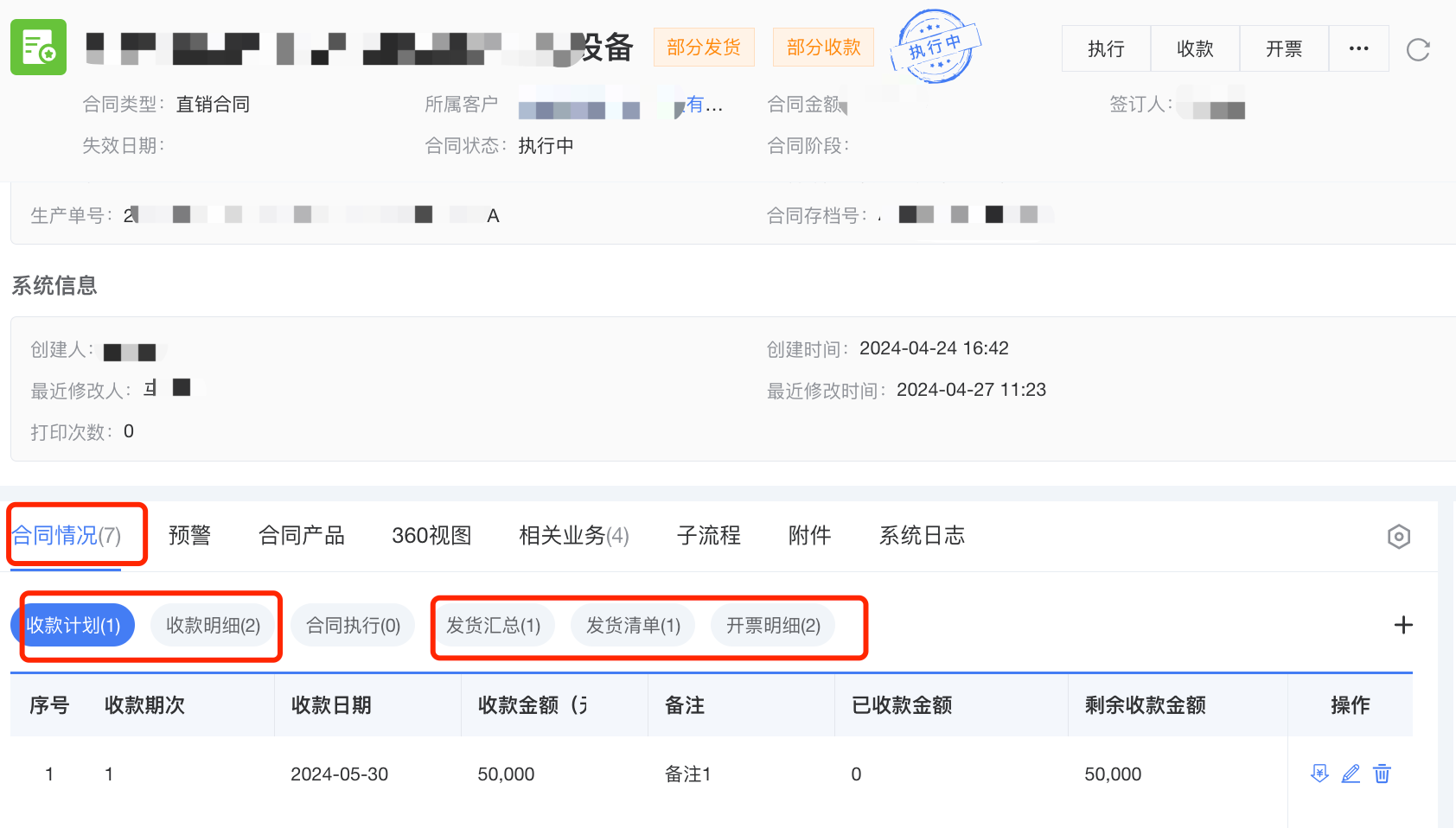 3、全面有效管理合同的收款和發(fā)貨,系統(tǒng)實(shí)時(shí)跟蹤和匯總合同執(zhí)行情況,管理員通過360視圖,可以直觀看到匯總數(shù)據(jù)。