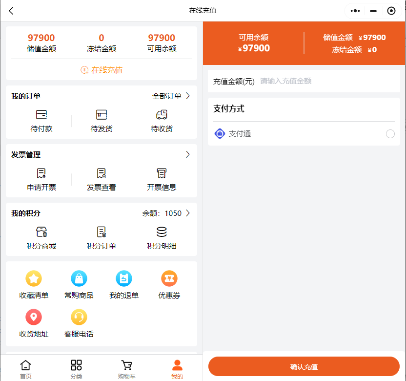 無縫對接管家婆ERP系統,商城實時讀取系統中的余額,同時商城充值金額自動回傳到ERP系統中,無需在ERP系統中手工做單。