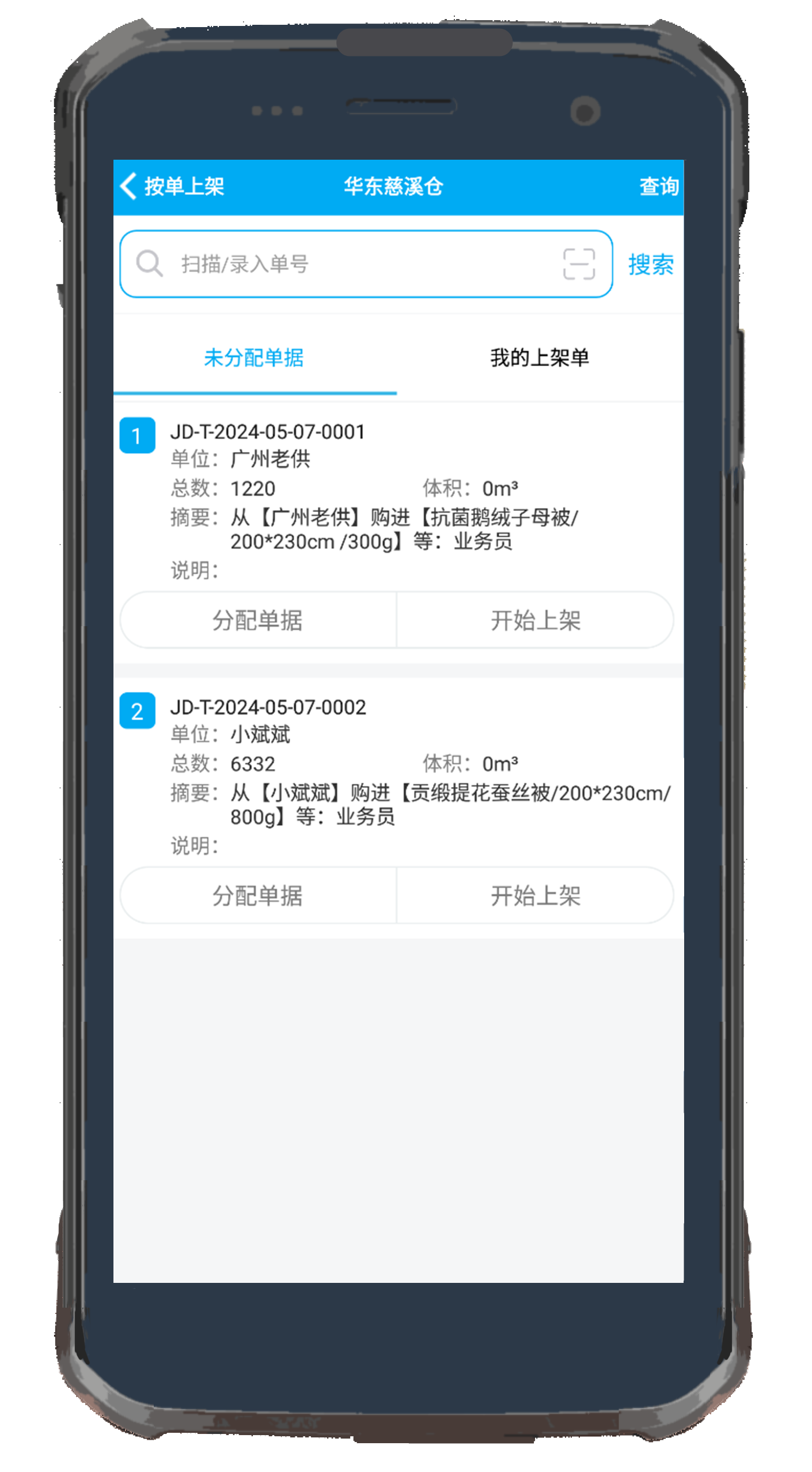 倉庫接受附近各門店的下單,根據管家婆A8系統下發的出庫單,單據可以在倉儲的WMS系統中進行分派或加急等處理,同時倉庫人員也可以在手持PDA端選擇或查看單據。