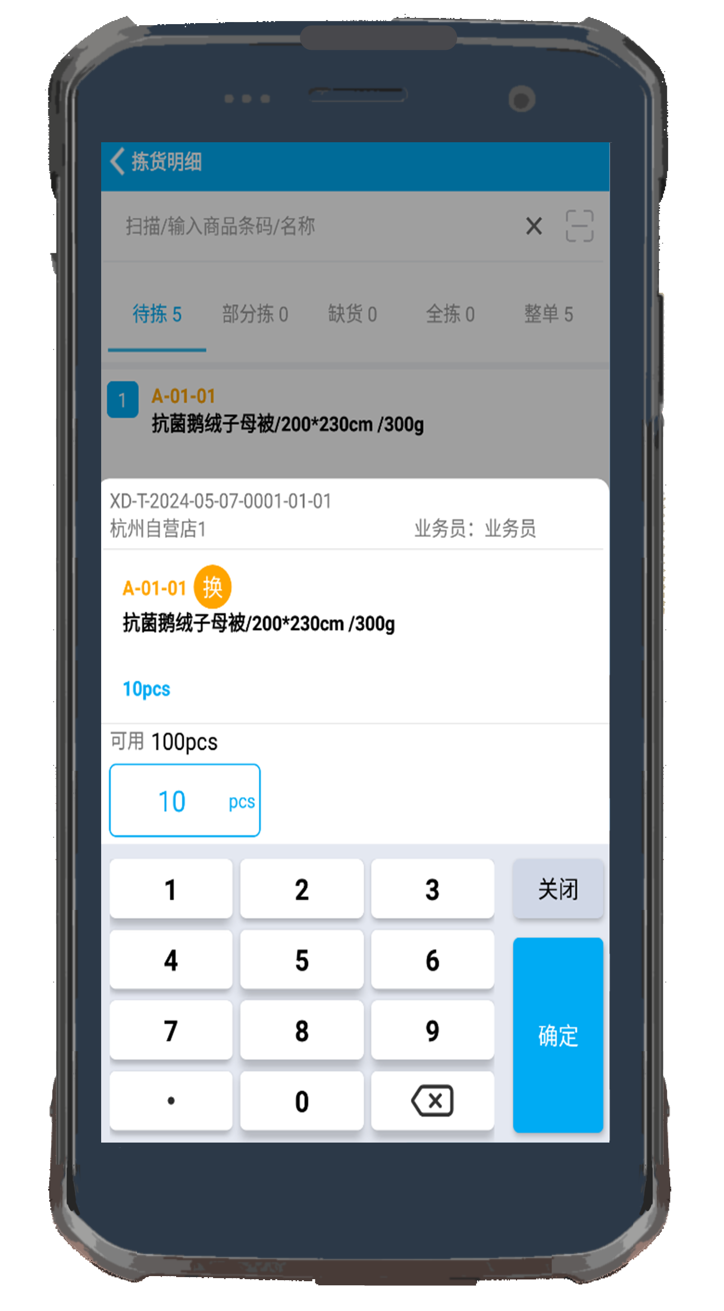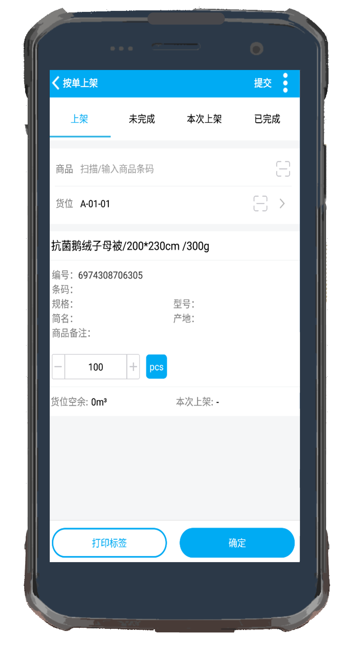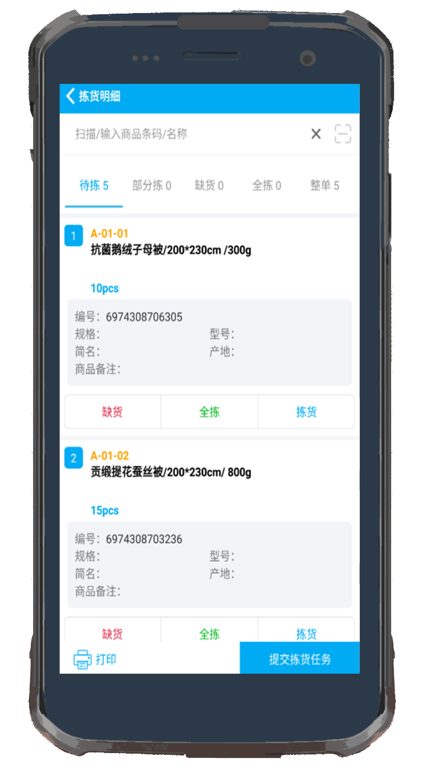 進入揀貨任務,系統智能按遠近進行排列要拿的商品,并顯示商品所在的貨位。倉庫人員按系統導航指引拿貨即可。